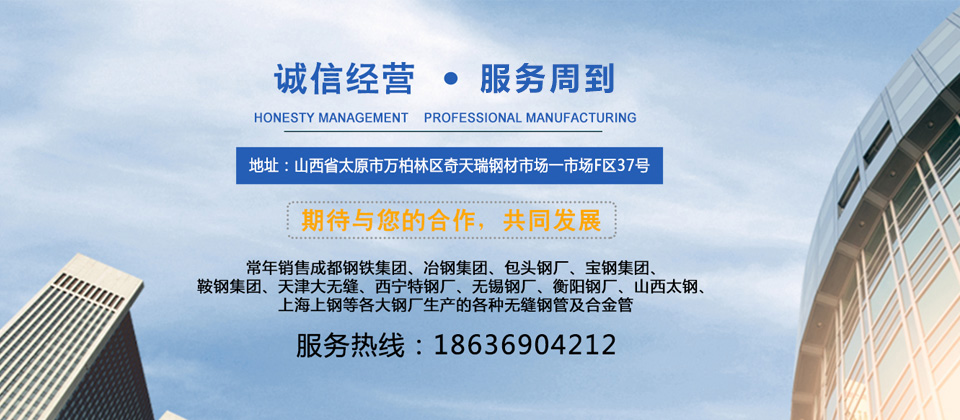 山西衡泰尚盈貿易有限責任公司是集生產加工經營于一體的無縫鋼管、不銹鋼管、合金管、鍋爐管、液壓支柱管、方管、方矩管、不銹鋼板等的大型企業,常年銷售成都鋼鐵集團、冶鋼集團、包頭鋼廠、寶鋼集團、鞍鋼集團、天津大無縫、西寧特鋼廠、無錫鋼廠、衡陽鋼廠、山西太鋼、上海上鋼等各大鋼廠生產的各種無縫鋼管及合金管。
